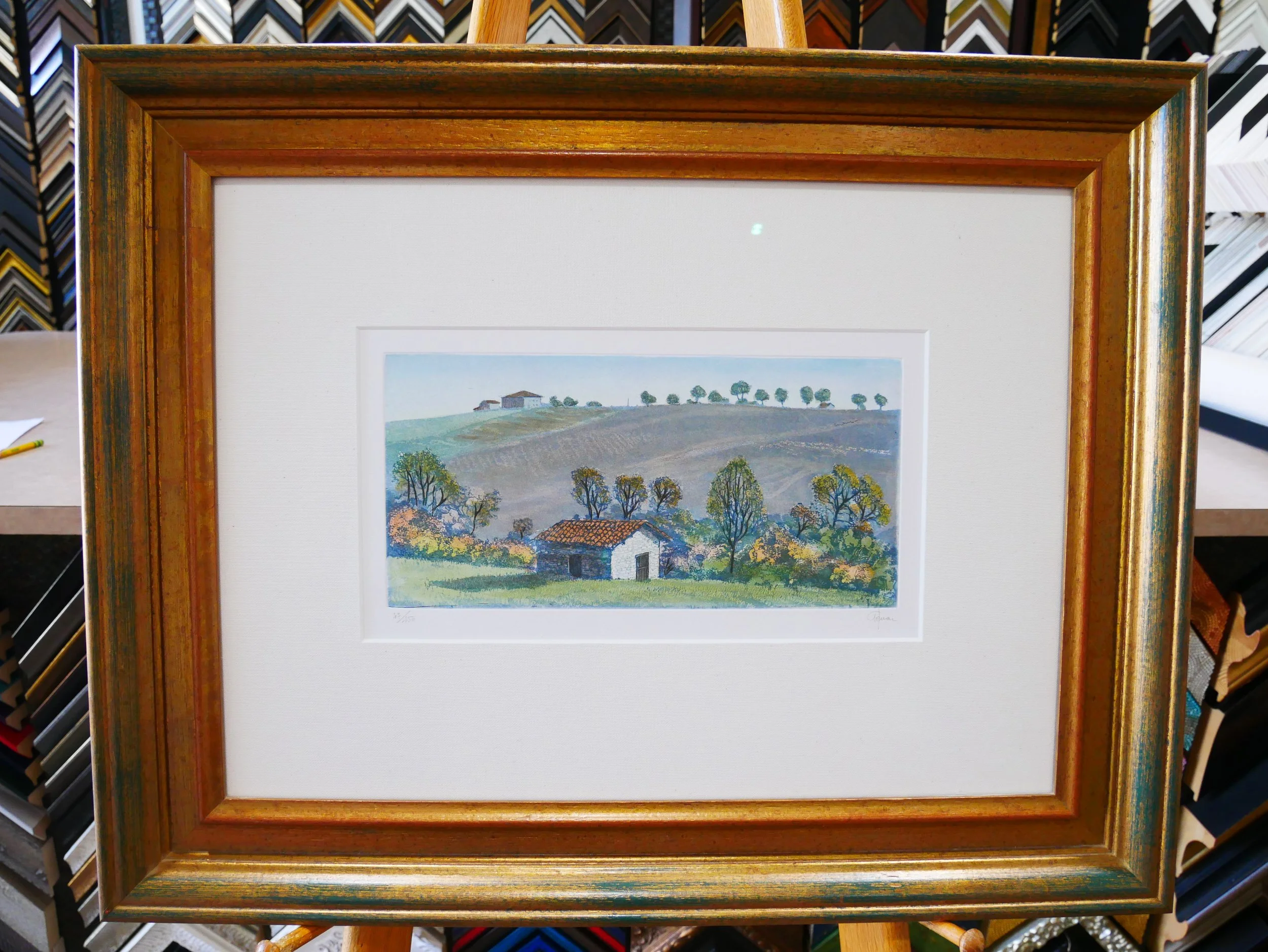 Farm Field (18 ¾ x 24) gold speckled frame w/ museum glass, Giorgio Ferrari -$350