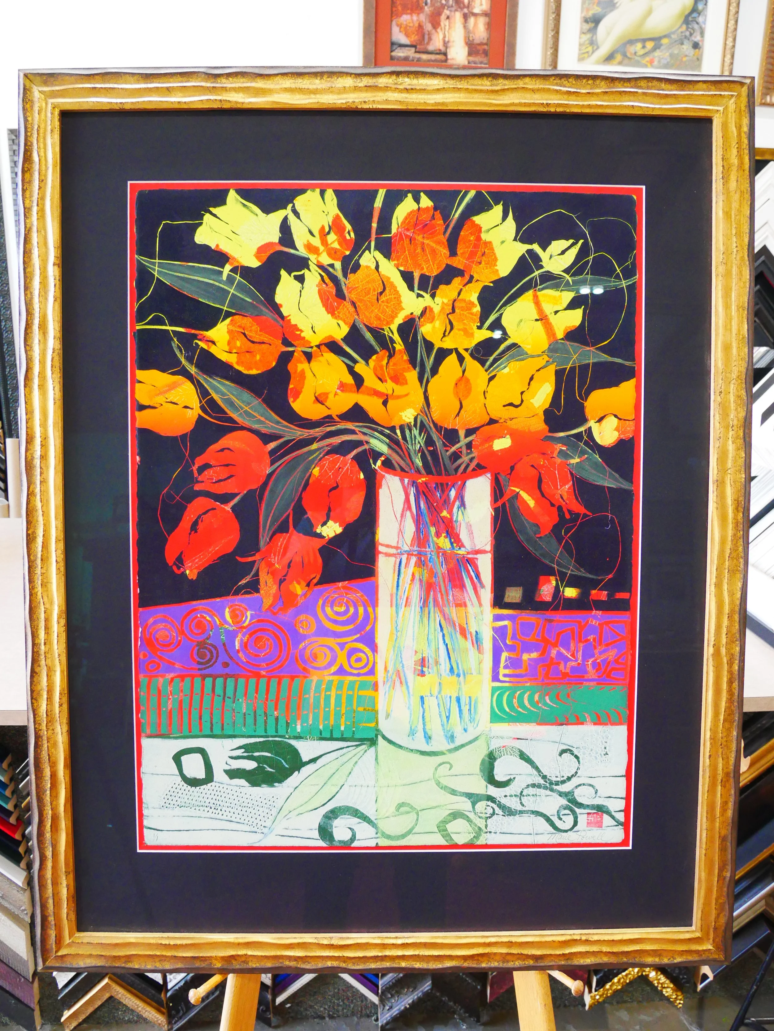 Flower Vase in Color (41 ¾ x 33 ⅓) gold distressed frame w/ museum glass, Marie Powell -$1900